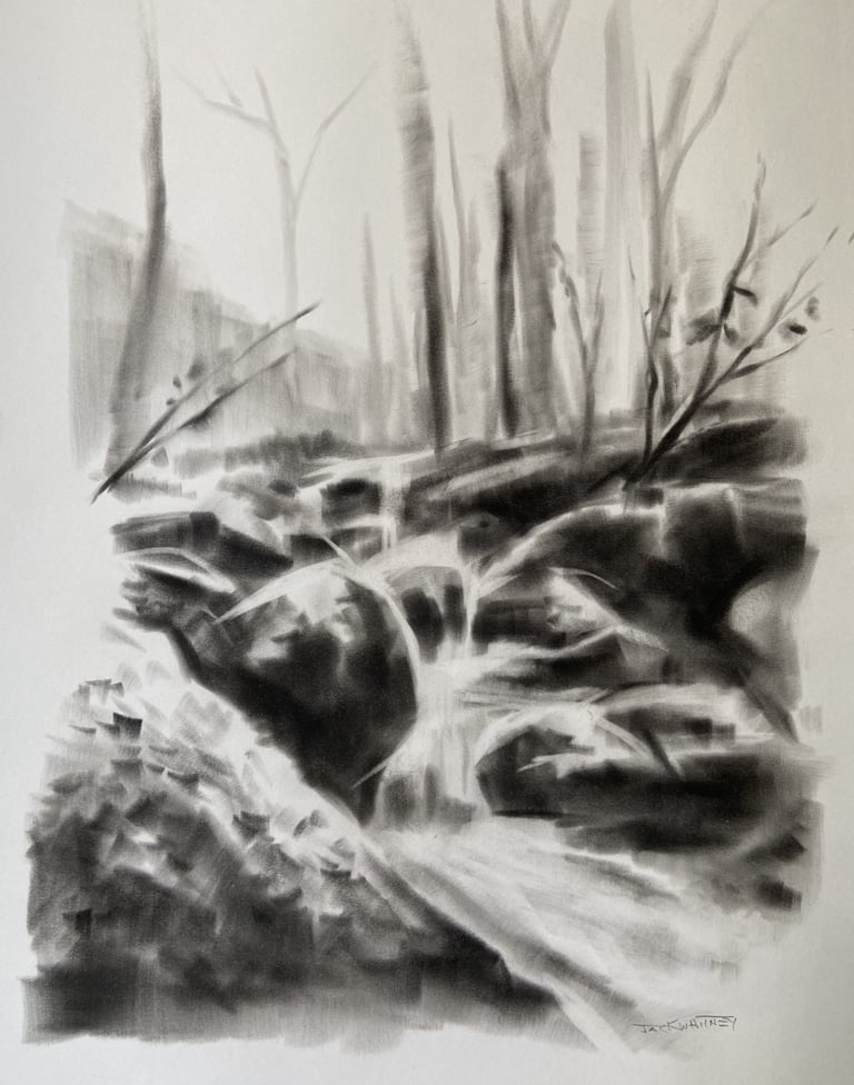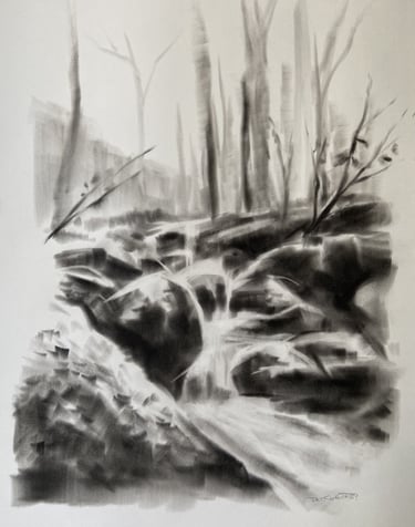 Experience the serene beauty of nature with this exquisite Panpastel drawing, featuring a peaceful forest stream surrounded by gently scattered rocks and lush trees. The artist's masterful use of soft shading and expressive lines evokes calm and tranquility, making this artwork an exceptional centerpiece for any home, office, or art collection. Each piece is carefully crafted on premium art paper, measuring 11 x 16 inches, and showcases rich, deep black and subtle grey tones that highlight the natural elegance of the forest landscape. Perfect for gifting or personal enjoyment, this unique drawing will elevate your decor with timeless style.