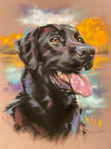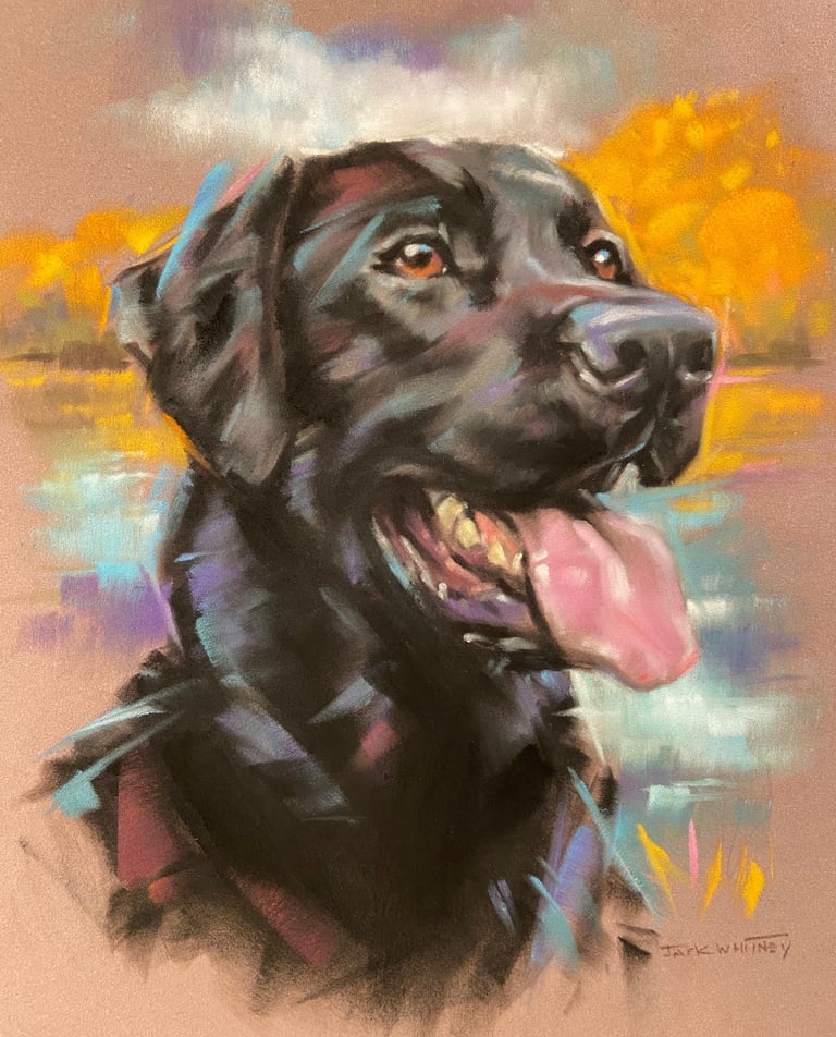 Measuring 9 x 12 inches, this piece features a Labrador Retriever with intricate detailing set against a tranquil backdrop, where soft pastel tones are seamlessly blended to create a warm and inviting ambiance. This artwork makes a stunning addition to any home or gallery and is perfect for art enthusiasts and discerning collectors.
