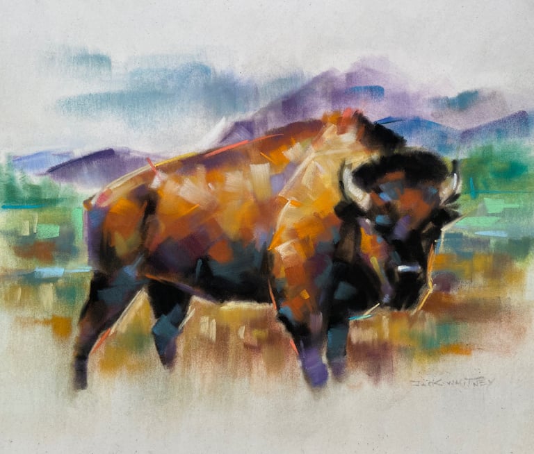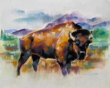 Experience the untamed spirit of nature with this stunning abstract bison painting. Skillfully hand-painted with expressive brush strokes and a dynamic palette of deep browns, vibrant reds, and golden accents, this contemporary artwork embodies the raw strength and majesty of the iconic bison. Measuring 9" x 12", it’s the perfect piece for your living room, office, or gallery wall. Each piece is one-of-a-kind, crafted to energize your décor and inspire conversation. Make a bold statement and bring originality into your space with this remarkable impressionistic creation.