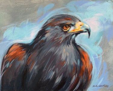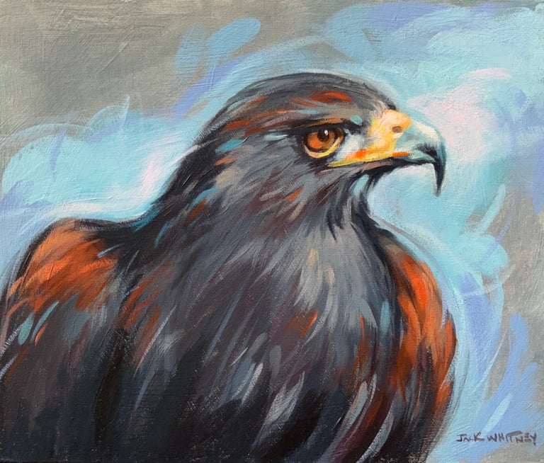Experience the majestic beauty of nature with this handcrafted eagle portrait painting. Expertly rendered with vivid colors and dynamic brushstrokes, the artwork captures the strength and grace of the eagle, making it a striking work of art for your home or office. Measuring 11 x 14 inches, this original piece is painted on high-quality canvas and features a rich palette of earthy tones and golden highlights, creating an elegant statement that complements any decor. Perfect as a unique gift or a standout addition to your art collection.
